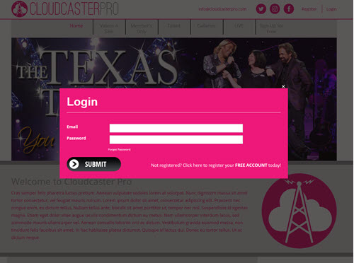 1) Click JOIN to register a FREE CloudCasterPro Account. Fill in your details and click SUBMIT to create your user account. Your email address is your username.